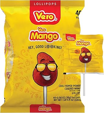 Dulces Vero Mango Mango Chili Lollipops 40ct 22 6 Oz Mexican Candy Unique Snacks Mango